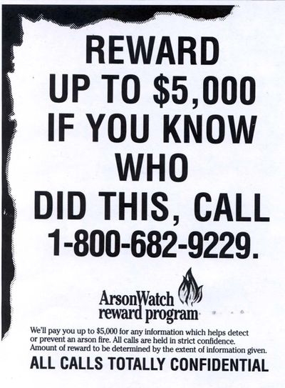 Arson Watch Hotline 1-800-682-9229, and the